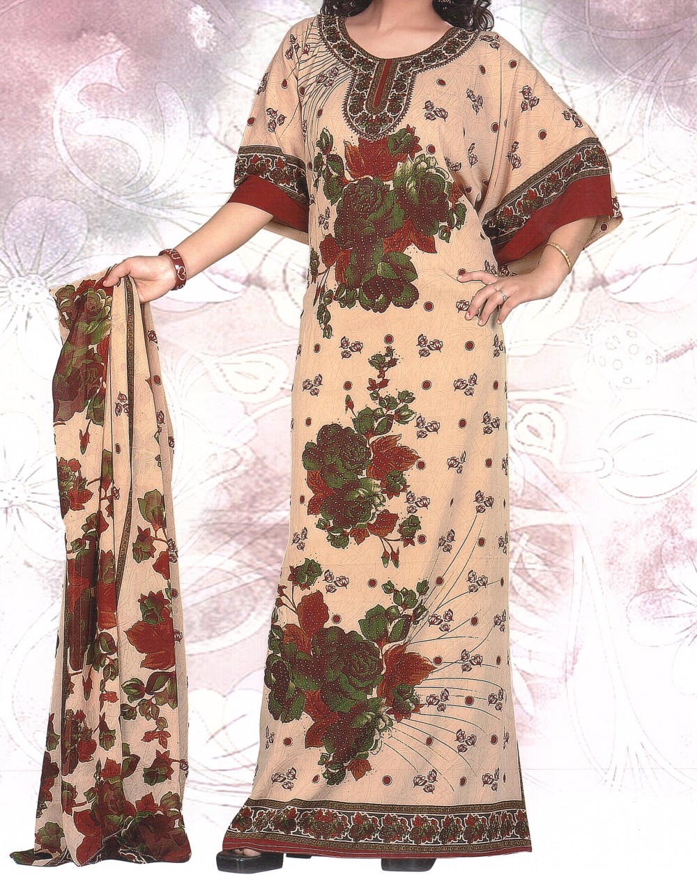 Halima Fashion Dubai : Robe orientale zébrée avec des motifs fleurs manches longues - REF. 20208 (22.00 €)