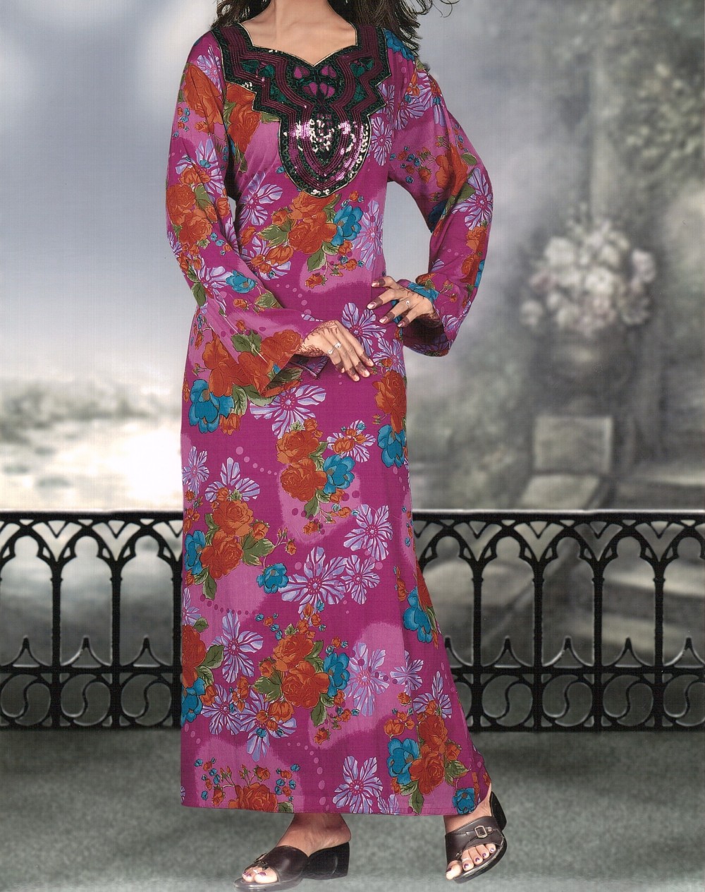 Halima Fashion Dubai : Robe orientale zébrée avec des motifs fleurs manches longues - REF. 20208 (22.00 €)