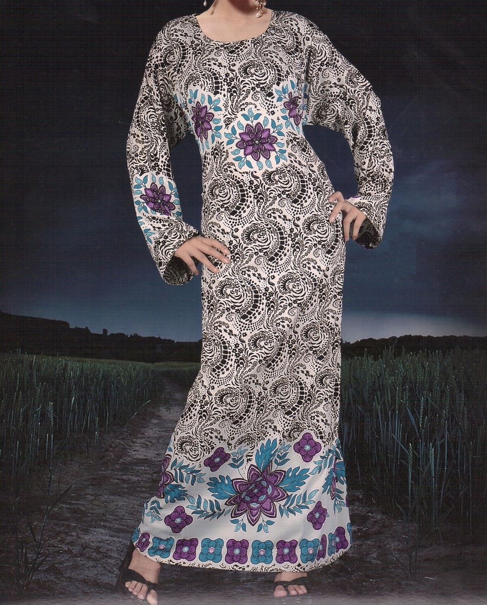 Robe orientale longue Selma, manches longues.