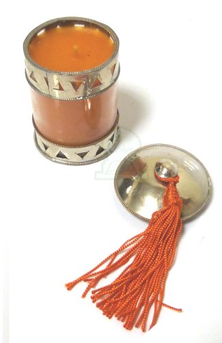 Photophore / Bougie parfumée en verre avec couvercle en métal argenté ciselé et martelé terminé d'un pompon en Sabra - Modèle orange - REF. 16643 (12.00 €)