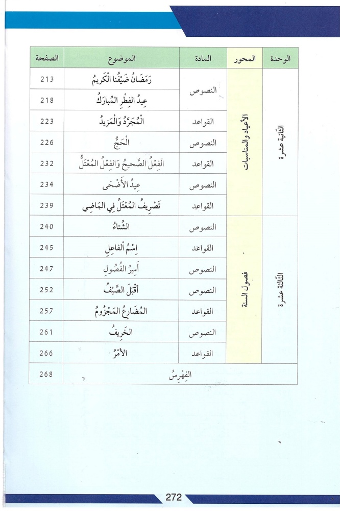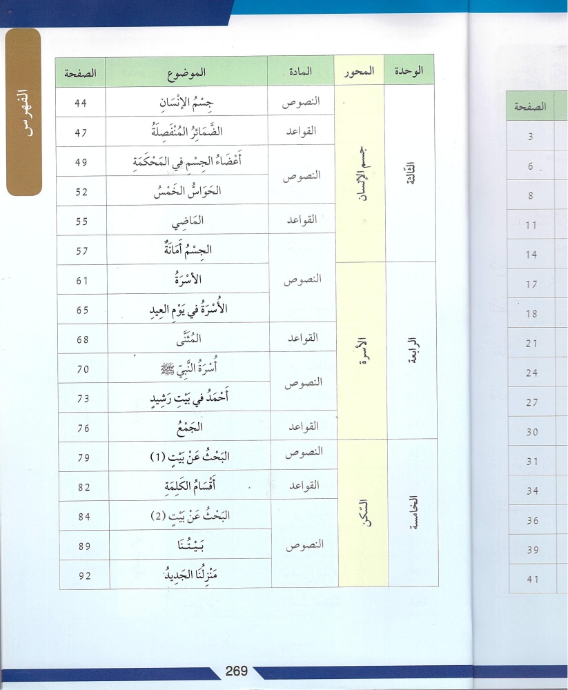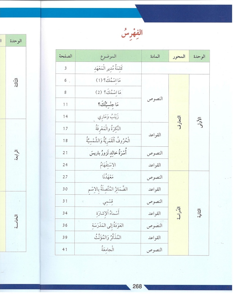الكتاب الأول تحت عنوان "من الحرف إلى النص" و يتكون من 243 صفحة مقسمة على 8 مجموعات والكتاب الثاني تحت عنوان "كتاب النصوص و القواعد" مقسمة على 13 وحدة و يتكون من 272 صفحة.