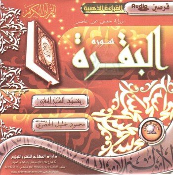 Excellente version de récitation de sourate Al-Baqara, en deux CDs audio, selon la lecture Hafs, d'après 'Âsim, par la voix du Cheikh récitateur Mahmoud Al-Husari...