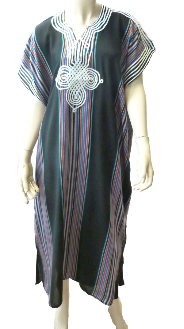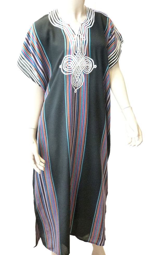 Gandoura / Robe marocaine pour femme avec rayures multicolores (Taille Standard) - Noire - REF. 17285 (25.00 €)