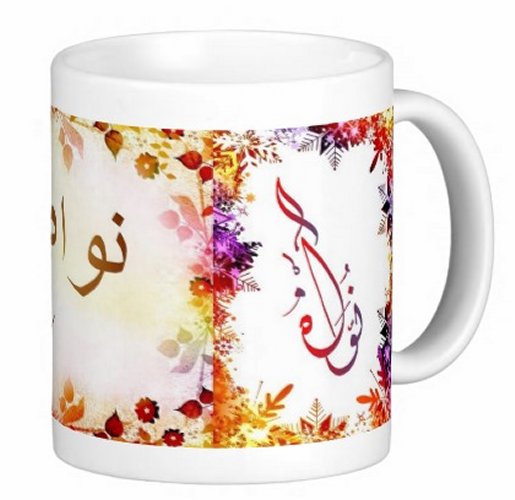 Voir l'ensemble des mugs dédiés au prénoms calligraphiés en arabe (Mugs prénoms arabes - Mugs prénoms français féminins)