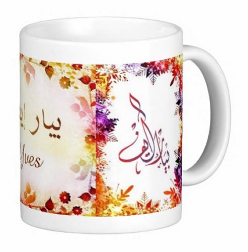Voir l'ensemble des mugs dédiés au prénoms calligraphiés en arabe (Mugs prénoms arabes - Mugs prénoms français féminins)