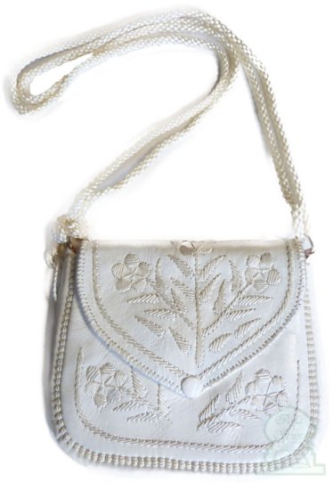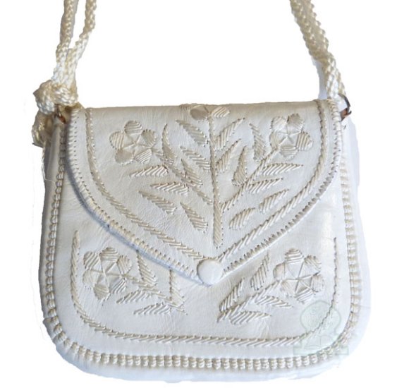 Sac artisanal marocain en cuir de couleur blanche avec motifs cousus - Pour fillettes - REF. 17544 (12.00 €)