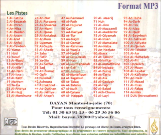 Le Coran complet au format MP3 Par Cheikh Yasser SALAMAH [CD300] - REF. 12827 (6.00 €)
