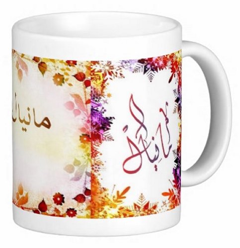 Voir l'ensemble des mugs dédiés au prénoms calligraphiés en arabe (Mugs prénoms arabes - Mugs prénoms français féminins)