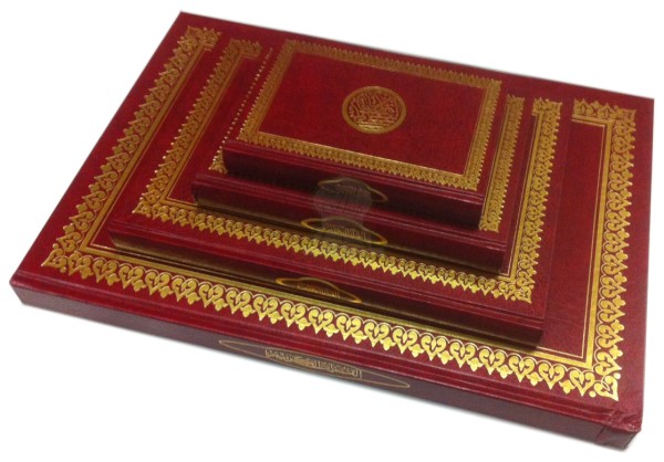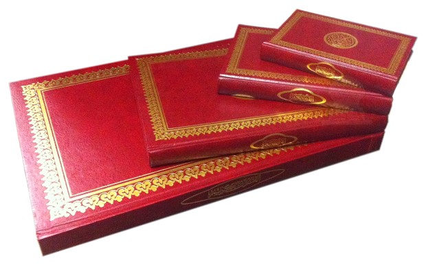 Lot de 3 Corans en langue arabe, lecture Hafs. Couverture cartonnée rouge avec dorure. Idéal pour offrir à une mosquée ou pour la maison, ces 3 Coran d'une qualité irréprochable (papier, impression et finition).