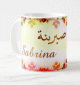 Mug avec le prénom "Anna" écrit en français, en arabe (أنا) et calligraphié de façon artistique en arabe sur la partie droite.