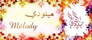Signification (sens) du prénom Mélody مِيلُودِي: Inspiré du nom commun mélodie qui désigne un enchaînement de sons harmonieux en musique.