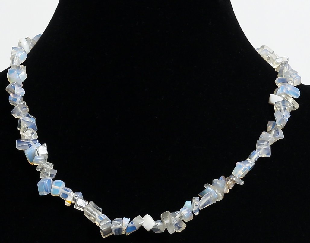 Collier ethnique artisanal imitation pierres blanches difformes séparées de perles en métal et composé de perles blanches - REF. 18950 (14.00 €)