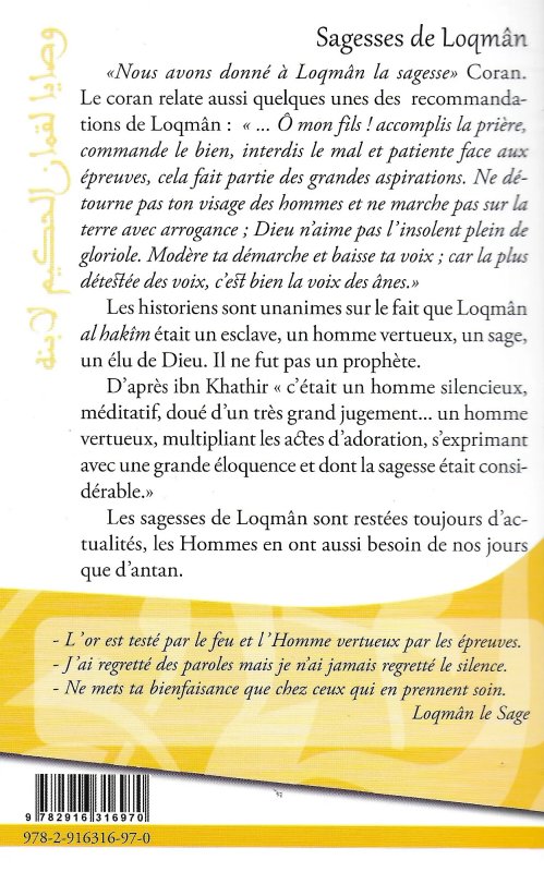 L'intérêt de ce recueil est d'avoir rassemblé en recoupant diverses sources un ensemble de sentences que Loqmân aurait prononcé, nous donnant à goûter la "saveur" de cette sagesse dont l'esprit est le fil conducteur qui les ordonne :