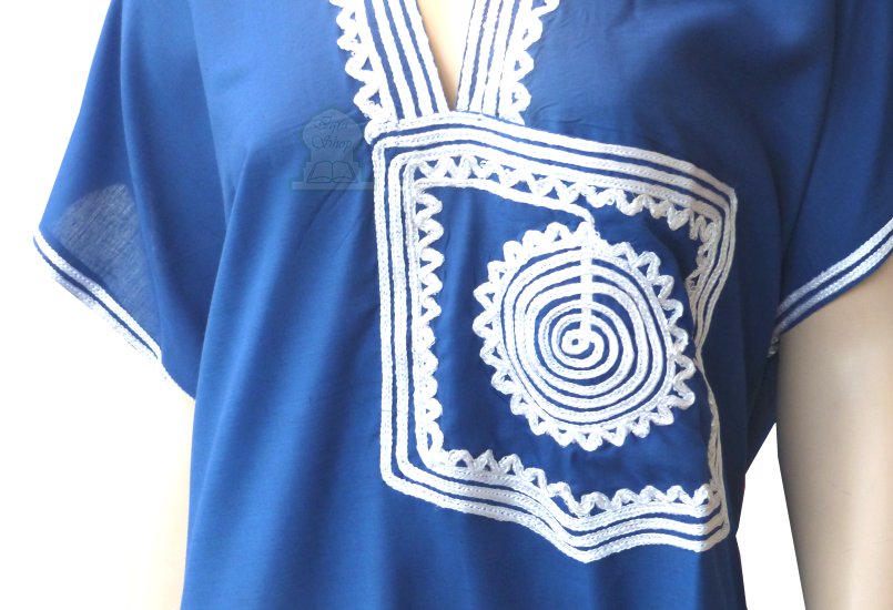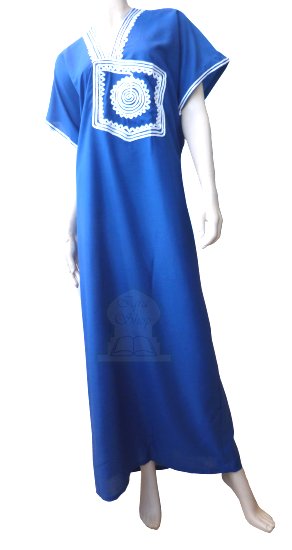 Gandoura marocaine de couleur bleu roi avec brodure blanche et grande poche au niveau du cole - REF. 19164 (25.00 €)