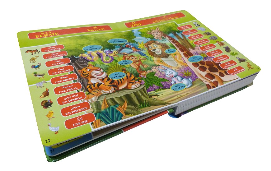 Plus de 500 mots en arabe et français. Pages épaisses et couverture avec mousse.