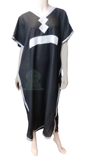 Gandoura marocaine de couleur noir avec brodure blanche et grande poche au niveau du cole - REF. 19161 (25.00 €)