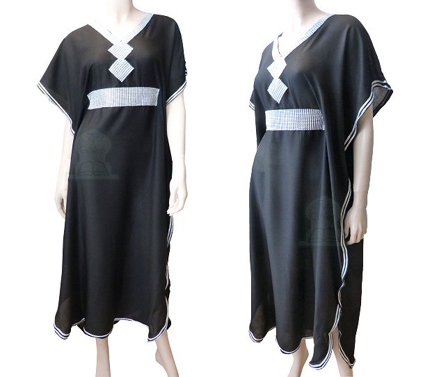 Gandoura marocaine noire avec strass argentés - REF. 19282 (25.00 €)