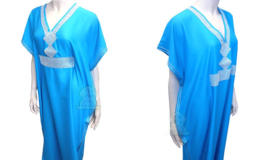 Gandoura marocaine bleue turquoise avec strass argentée Vetement & Accessoire