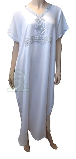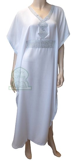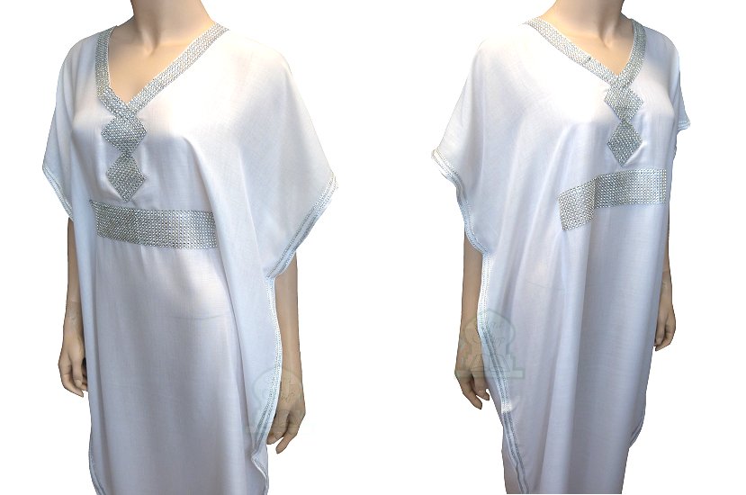 Gandoura marocaine blanche avec strass argentée - REF. 19311 (25.00 €)