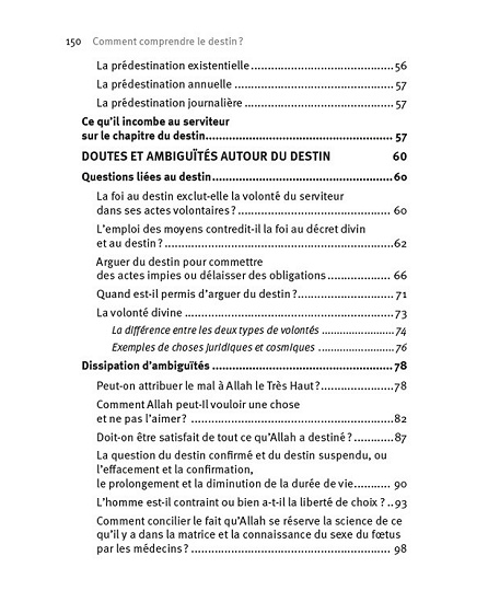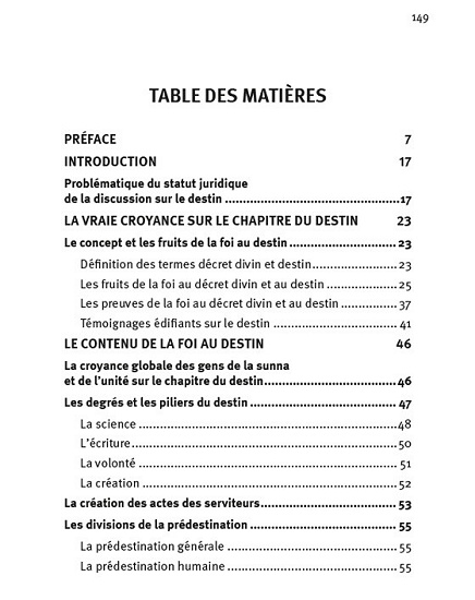 La foi au destin occupe, en islam, une place éminente et jouit d'une importance majeure, Cette foi constitue, en effet, le pivot et l'ordre du monothéisme ainsi que la religion authentique. C'est l'un des piliers de la foi (al-Imân) et la base fondamentale de la religion excellente (al-Ihsân).Le plan de la recherche comporte une introduction, trois parties et une conclusion, comme suit:L'introduction : elle porte sur une question liée au statut juridique de la discussion sur le destin.Partie 1 : La vraie croyance au destin. Elle comporte deux chapitres: