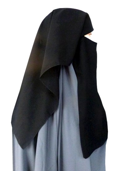 Niqab court noir deux pièces. Ce niqab est composé de 2 voiles doux et agréables à porter ainsi que d'une petite voilette qui dissimulera vos yeux. Vous pourrez ainsi voir sans être vu.