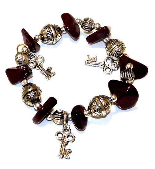 Bracelet d'artisanat marocain avec des pierres de couleur marron fonce