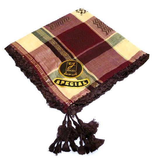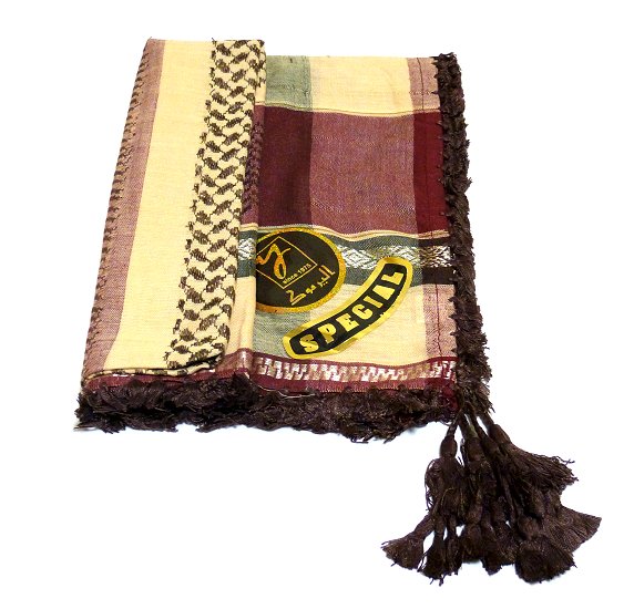 Grand foulard palestinien (Keffieh - Shemagh) de couleur bordeaux et beige - REF. 16933 (10.00 €)