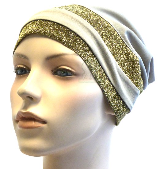 Bonnet de couleur avec 2 bandes paillettes brillantes.