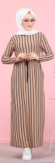 Robe maxi-longue à rayures noires mode décontracté ceinture intégrée (Vêtement femme voilée) - Couleur beige - REF. 36352 (25.00 €)