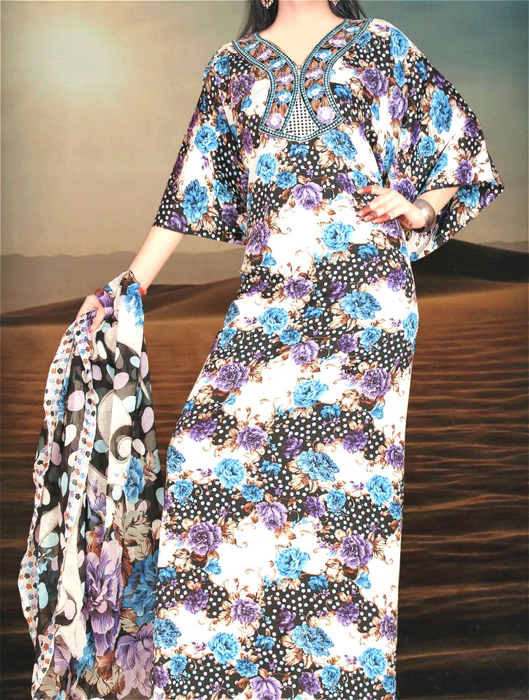 Halima Fashion Dubai : Robe orientale zébrée avec des motifs fleurs manches longues - REF. 20208 (22.00 €)