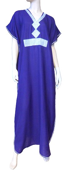 Robe marocaine traditionnelle brodée pour femme - Manches courtes - Couleur Bleu marine - REF. 29679 (35.00 €)