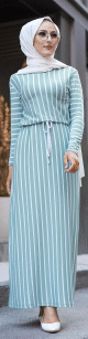 Robe très longue à rayures ceinture intégrée (Mode Musulmane) - Couleur Menthe - REF. 33883 (19.90 €)