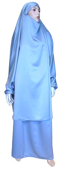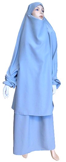 La cape du jilbab est à bandeau intégré, cache menton et manches élastiques.