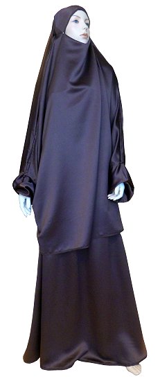 Jilbab réversible (satiné/normal) deux pièces (Cape + Jupe évasée) - Taille L/XL - Coloris marron chocolat Vetement & Accessoire