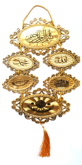 Cette décoration toute dorée qui s'accroche au mur embellira votre pièce tout en vous rappelant l'évocation de Dieu...