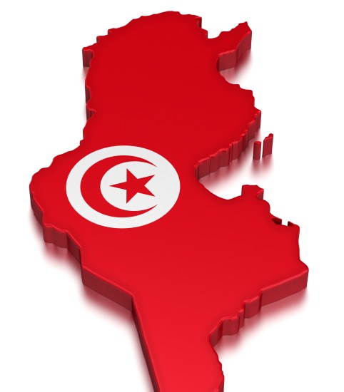 Le drapeau tunisien représentant le territoire tunisien en 3D.