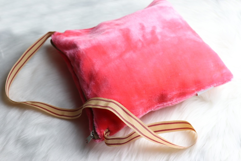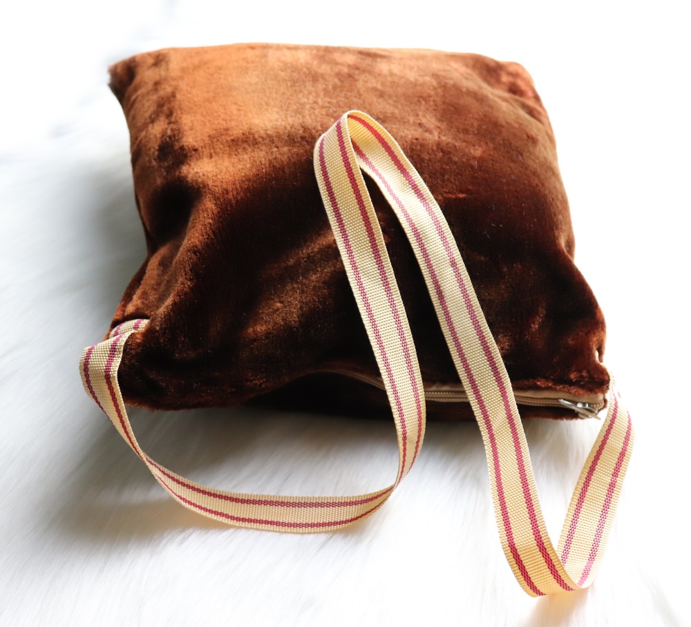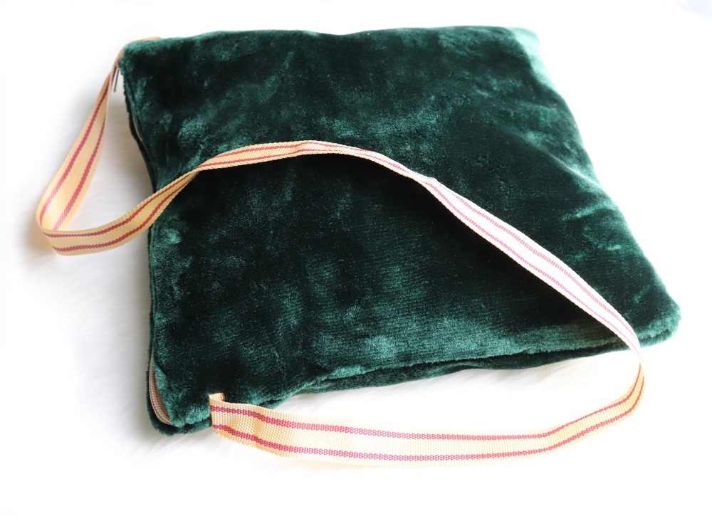 Sacoche en velours très doux avec fermeture zip et bandoulière. Permet de ranger son tapis, ses livres, boussoles ou autre objets et de les transporter facilement pour les voyages. Si vous mettez un tapis ou des vêtements à l'intérieur la sacoche se transforme en petit coussin très doux et pratique pour les voyages...