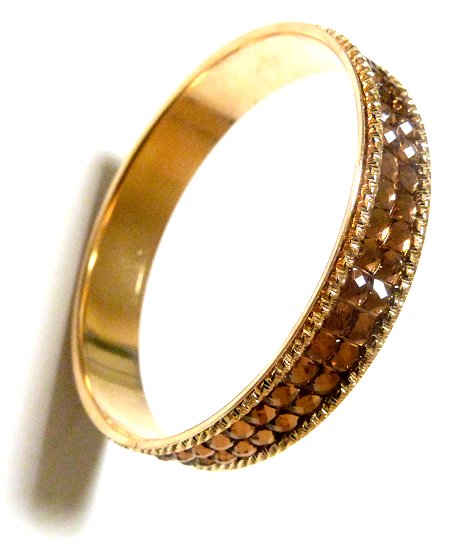 Bracelet fantaisie femme semi rigide en fil brillant jaune uni et serti de pierres cristallines - REF. 15338 (2.00 €)