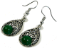 Boucles d'oreilles pendantes en métal argenté ciselé serties de pierres vert foncé - REF. 29621 (5.90 €)