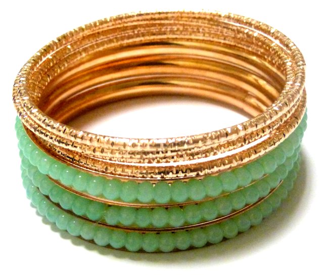 Lot de 7 bracelets en métal (3 bleu-verts et 4 dorés).
