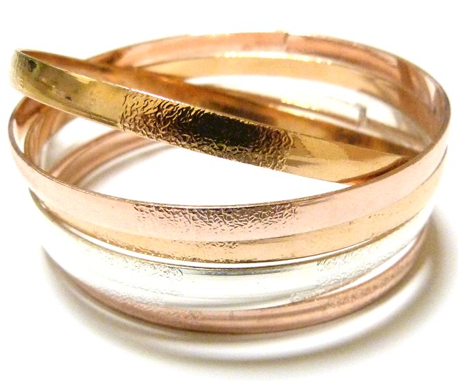 Ensemble de six bracelets assortis : 2 dorés, 2 argentés, 2 en cuivre...