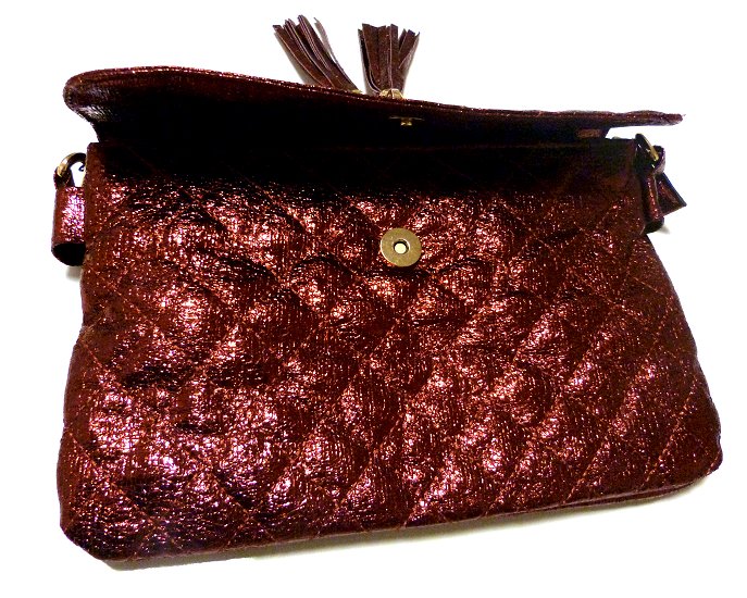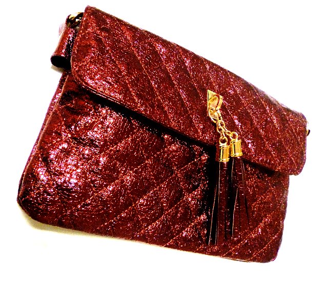 Pochette de Soirée : Sac à main brillant de couleur bordeaux Vetement & Accessoire