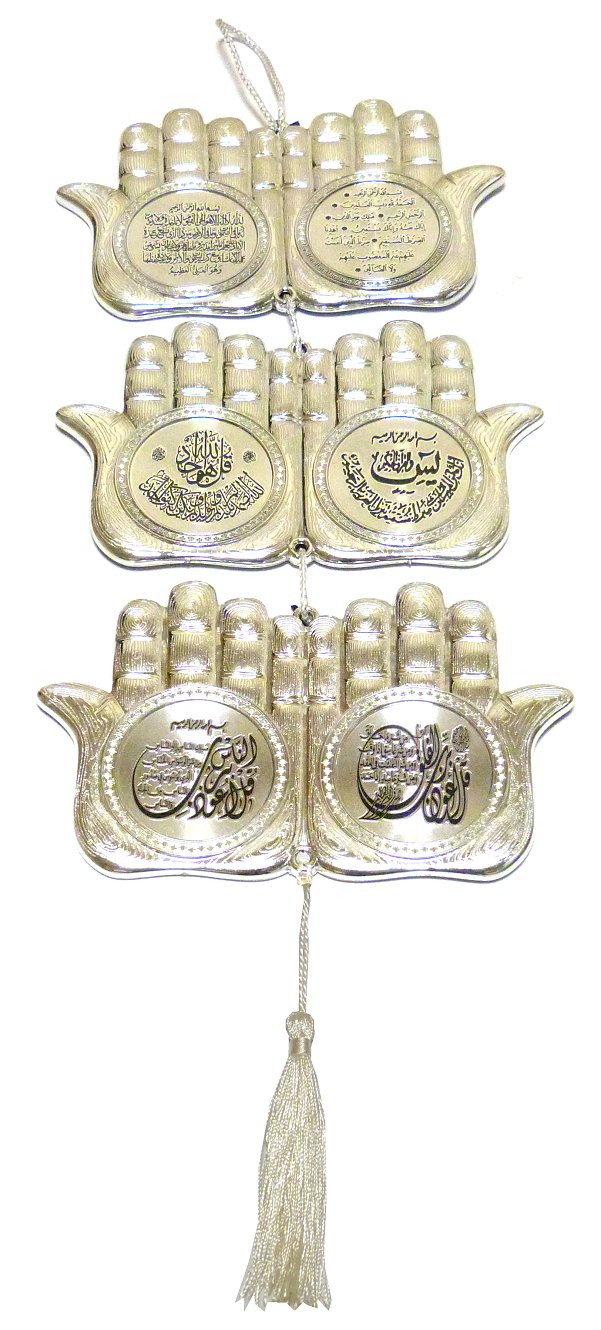 Tableau décoratif argenté avec inscriptions des sourates Yâsîn et Ayat Al-Koursî (Le Verset du Trône) - REF. 21758 (5.90 €)