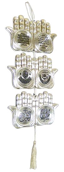 Pendentif argenté en 3 parties, chacune avec 2 mains en signe d'invocation
