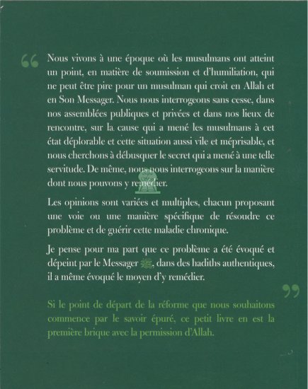 Je pense pour ma part que cette thématique a été évoquée et dépeinte par le Messager صلى الله عليه وسلم, dans des hadiths authentiques, il a même énoncé le moyen pour y remédier. Si le point de départ de la réforme que nous souhaitons commence par le savoir épuré, ce petit livre en est la première brique avec la permission d'Allah.
