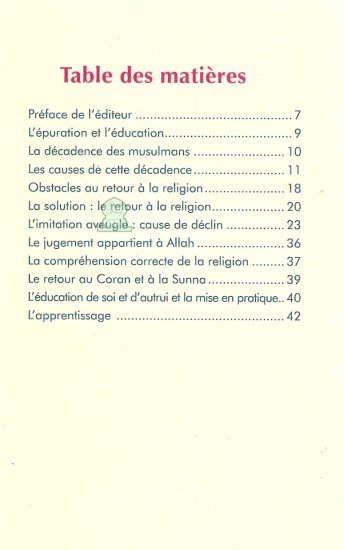 Les fondements de la réforme, Al-tasfiya wa al-tarbiya Livre