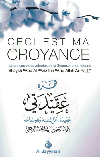 "Ceci est ma croyance" est un opuscule de son éminence, le sheikh, l’érudit ‘Abd Al-‘Azîz Ar-Râjihî - qu’Allah le préserve - dans lequel il explique et rappelle la foi et ses fondements : la foi en Allah, la foi aux Anges, la foi aux Livres, la foi aux Prophètes, la foi au Jour Dernier et la foi au destin bon ou mauvais.