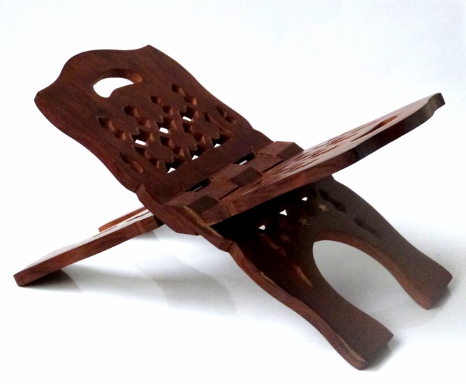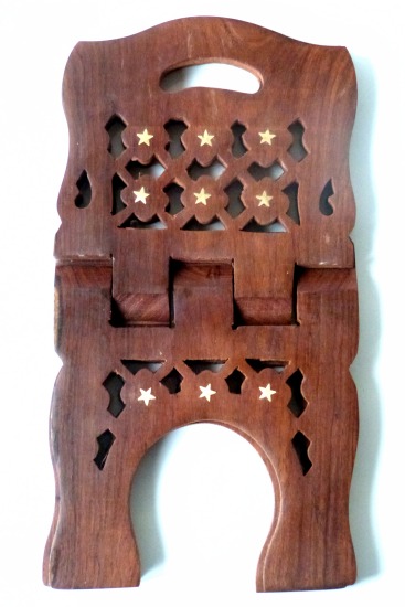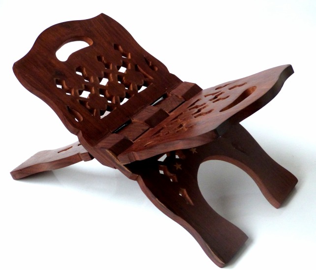Sculpté en bois, pratique pour y poser un livre lorsqu'on s'assoit par terre pour lire et méditer. Facile à ranger (se plie). Généralmeent utilisé dans les mosquées ou les maisons pour lire le Coran.