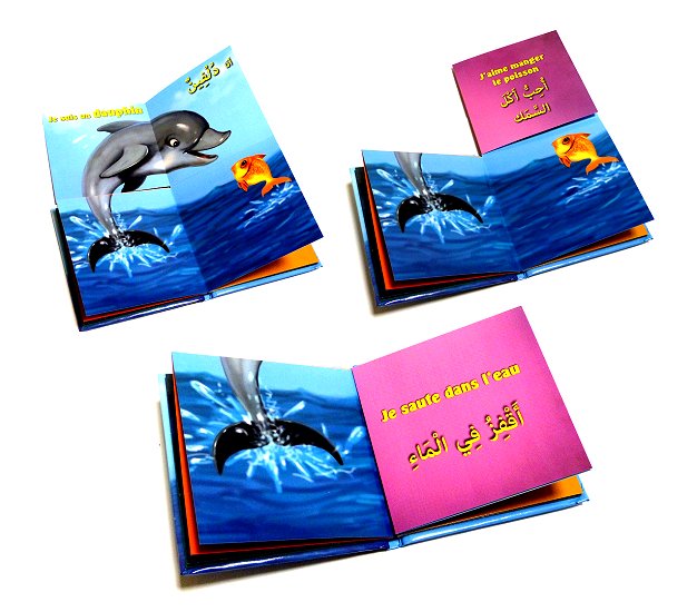 Un livre d'éveil pour les enfants à partir de 3 ans pour découvrir les noms des animaux en français et en arabe.
