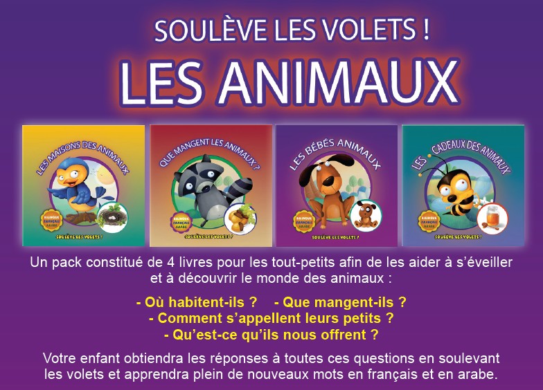 Les animaux - Soulève les volets ! Pack de 4 livres bilingues (français / arabe) - REF. 21083 (12.00 €) - En Promotion à 8.90 €